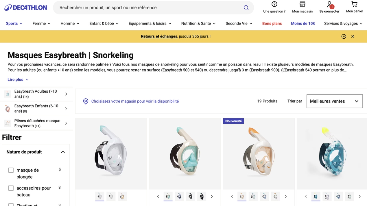 Easybreath浮潛面罩的核心創(chuàng)新在于,它讓初學(xué)者也能像在陸地一樣自然呼吸,輕松地?fù)肀率澜纭_@是一個(gè)為“體驗(yàn)”而生的產(chǎn)品。迪卡儂沒(méi)有將它簡(jiǎn)單地放在官網(wǎng)龐大的產(chǎn)品目錄中,而是為它創(chuàng)建了一個(gè)專屬的數(shù)字空間。后綴在這里起到了畫龍點(diǎn)睛的作用。